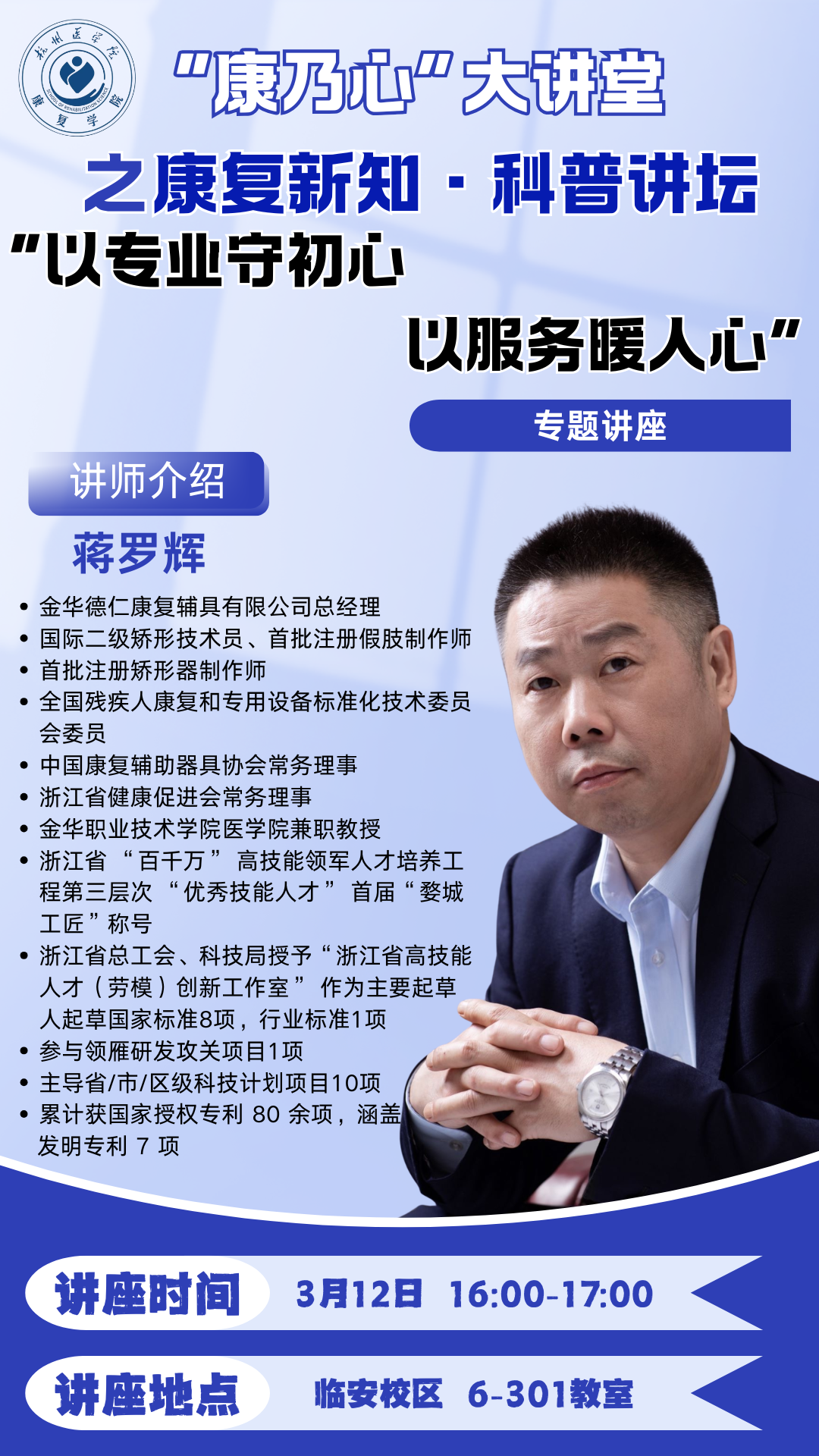 “康乃心”大讲堂之康复新知·科普讲坛——“以专业守初心 以服务暖人心”